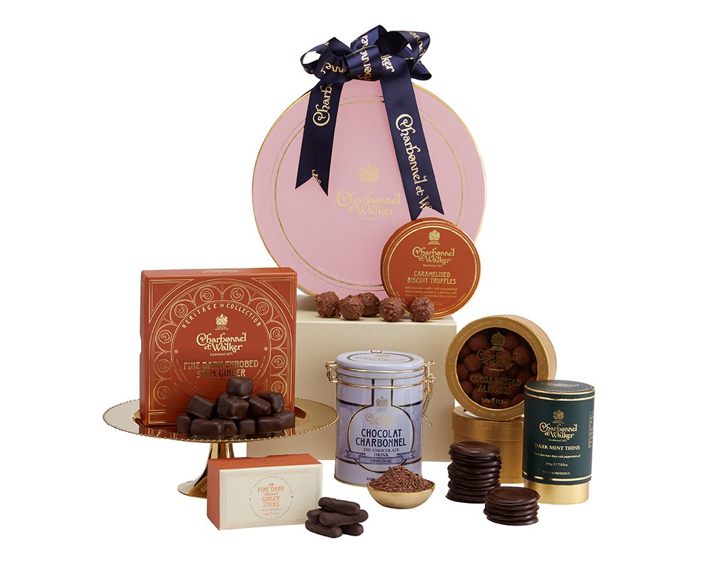 Sit back and relax with these good old fashioned favourites and our Scrumptious Hamper! Filled with enrobed stem ginger, hot drinking chocolate, orange sticks, cocoa dusted almonds, Mint Thins and more, this delightfully traditional hamper offers a fine selection of much loved Charbonnel et Walker.