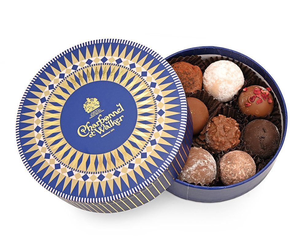 This ever so pretty gift box is decorated with our geometric Victorian design in navy, pink and gold. Filled with a classic selection of decadent Truffles (some contents do contain alcohol). Truffles include Raspberry & Amaretto, Pink Marc de Champagne, Dark Marc de Champagne, Whisky Truffle and more. If you would prefer to choose your favourites, please contact Mail Order on mailorder@charbonnel.co.uk or 0207 318 2075.